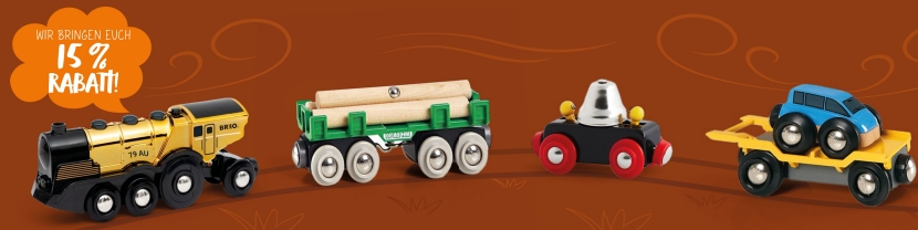 Die BRIO-Aktion mit 15 % Rabatt gilt vom 01.10.2025 bis zum 31.10.2026 beim Online-Kauf beliebiger BRIO-Produkte.
