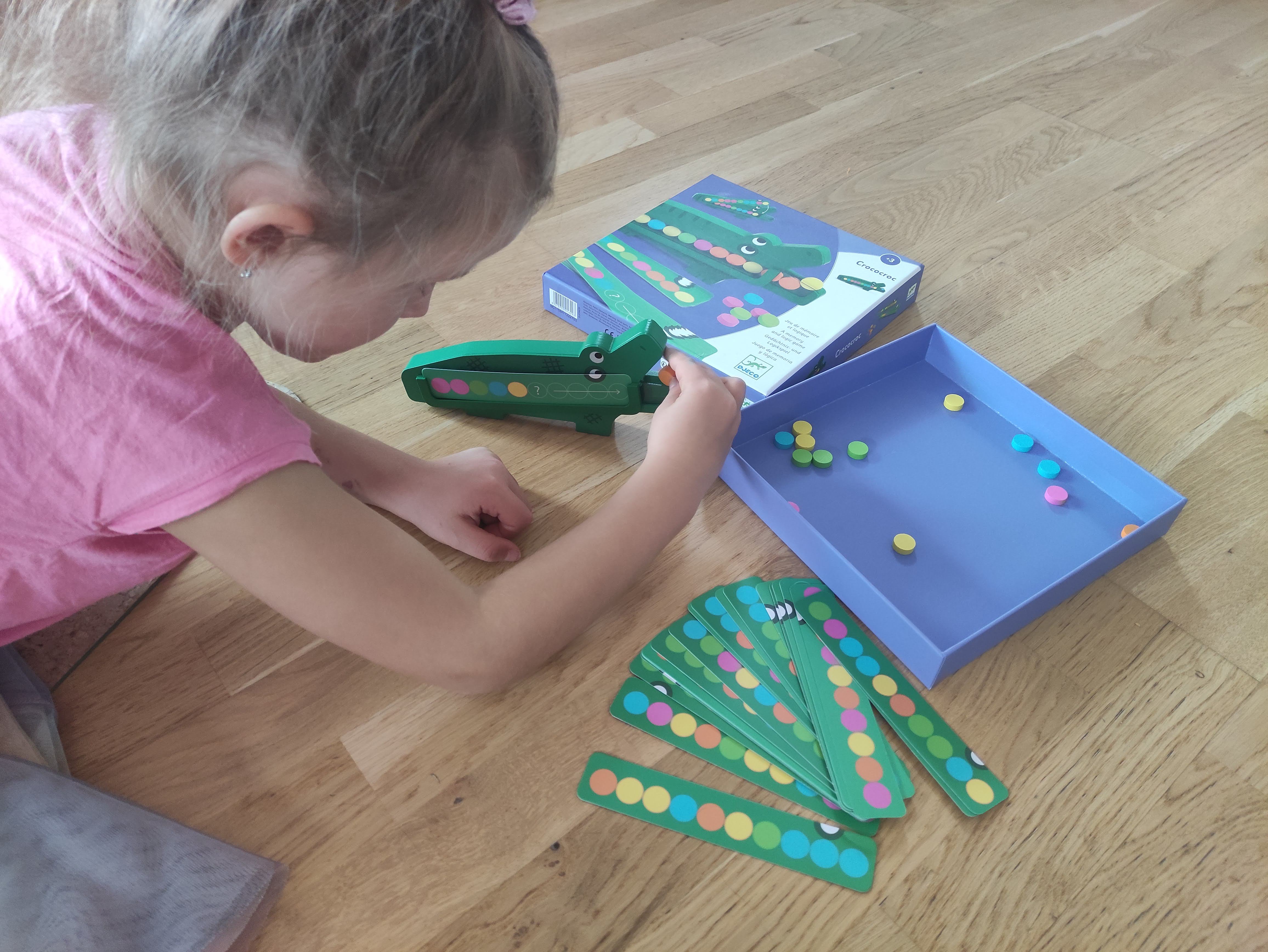 Das Spiel ist definitiv für Kinder ab 3 Jahren geeignet, aber in gewisser Weise können auch viel jüngere Kinder davon profitieren. Wie? Zum Beispiel, um ihren Pinzettengriff und ihre Feinmotorik zu trainieren. Das Krokodil ist aus Holz, so dass es auch von kleinen Kindern nicht beschädigt werden kann, wenn sie es anfassen. Sie können die Räder mit der kleinen Hand oder mit der großen Holzpinzette aus dem Pinstou Motorikspiel (das für Kinder im gleichen Alter gedacht ist und das wir ebenfalls sehr empfehlen) oder einer anderen Pinzette, die Sie zu Hause haben, in sein Maul stecken. Dank der farbigen Räder können Kinder mit diesem Spiel ihre ersten Farbübungen machen. Es ist also klar, dass dieses Spiel zu Hause mehrere Jahre lang auf unterschiedliche Weise Verwendung finden wird, und mir persönlich macht es sehr viel Spaß.