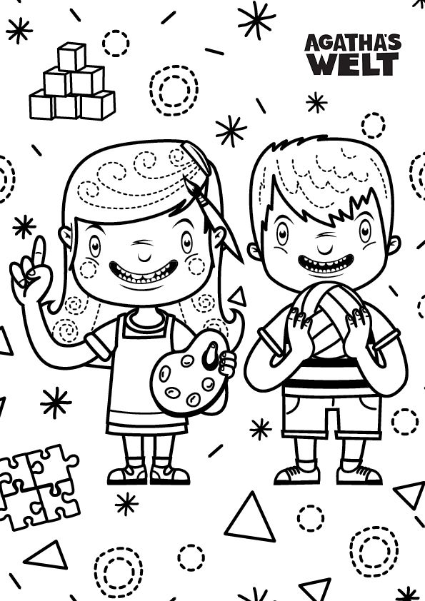 - 8 große Buntstifte (gelb, grün, rosa, rot, orange, hellblau, dunkelblau, braun)